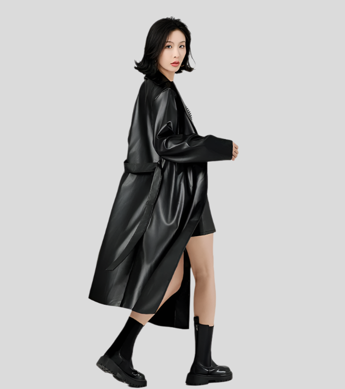 Lorenzo trenchcoat är det ultimata plagget för dig som vill sticka ut med stil. Tillverkad i högkvalitativt svart ekoläder, ger den en sofistikerad och självsäker look som lyfter varje outfit. Perfekt för både vardag och kväll – en jacka som kombinerar lyxig känsla, hållbar design och tidlös elegans i ett.