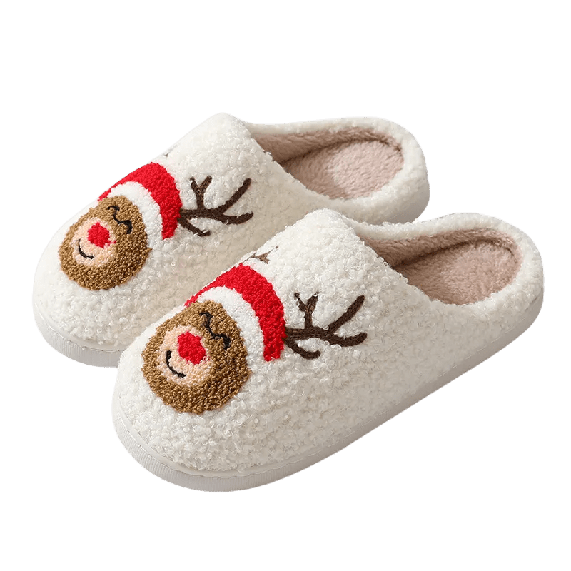 Majken | Mysiga och värmande jultofflor med renmotiv för kvinnor