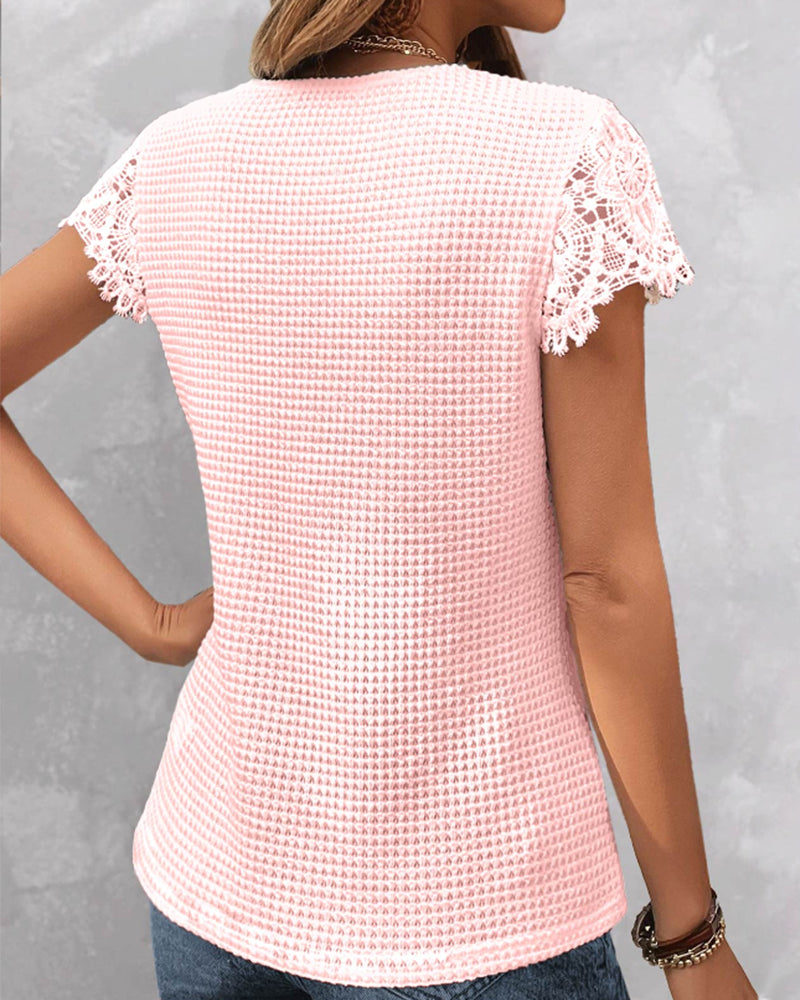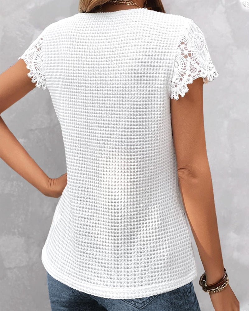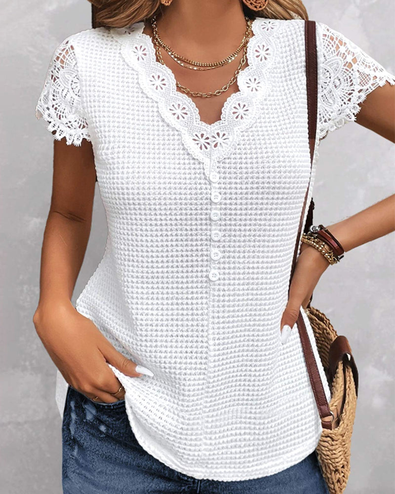 Mira | Spets Kortärmad Topp Med V-Ringning