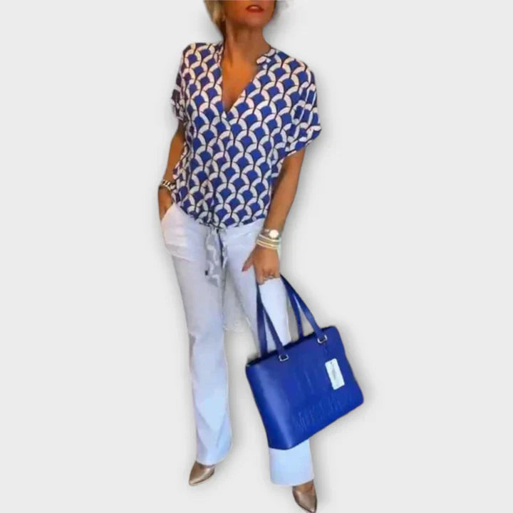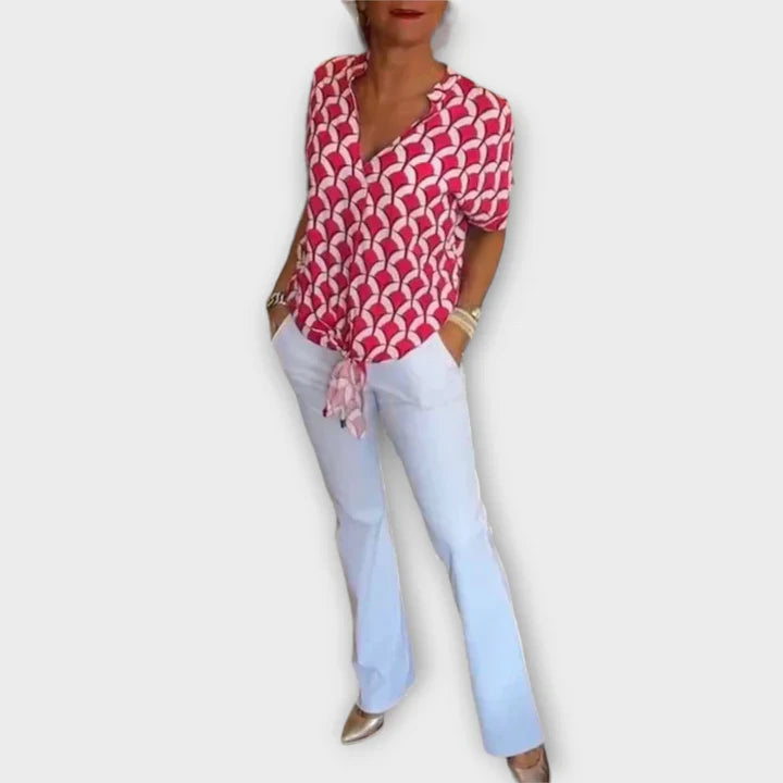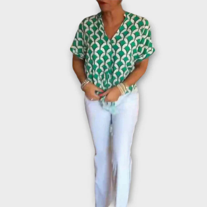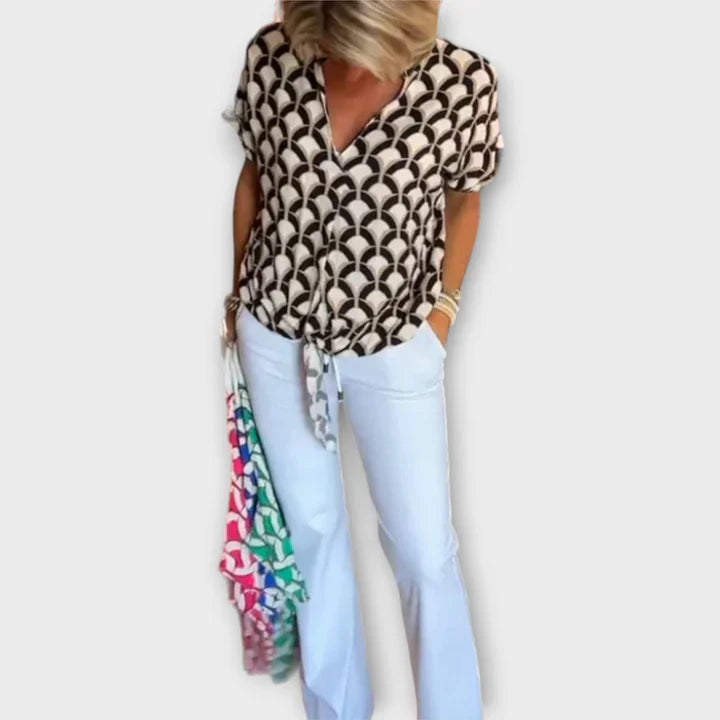 Mirabelle - Avslappnad topp med tryck och V-ringning