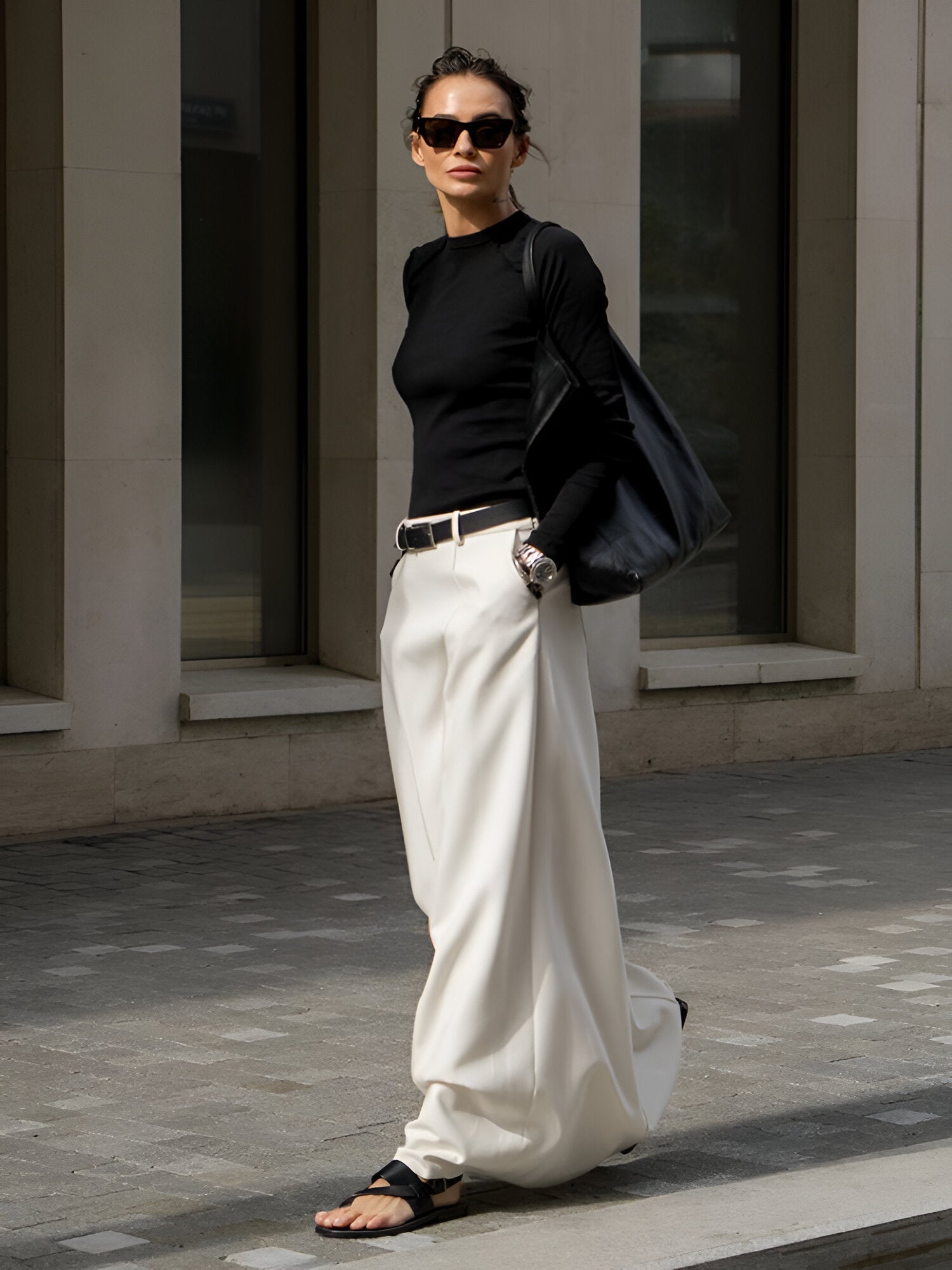 Smickrande passform med hög midja Upplev en silhuett som framhäver dina kurvor samtidigt som den ger komfort hela dagen. H-linjeformen skapar en elegant look som följer med dig, oavsett om du sitter vid skrivbordet eller är på väg till ett möte.