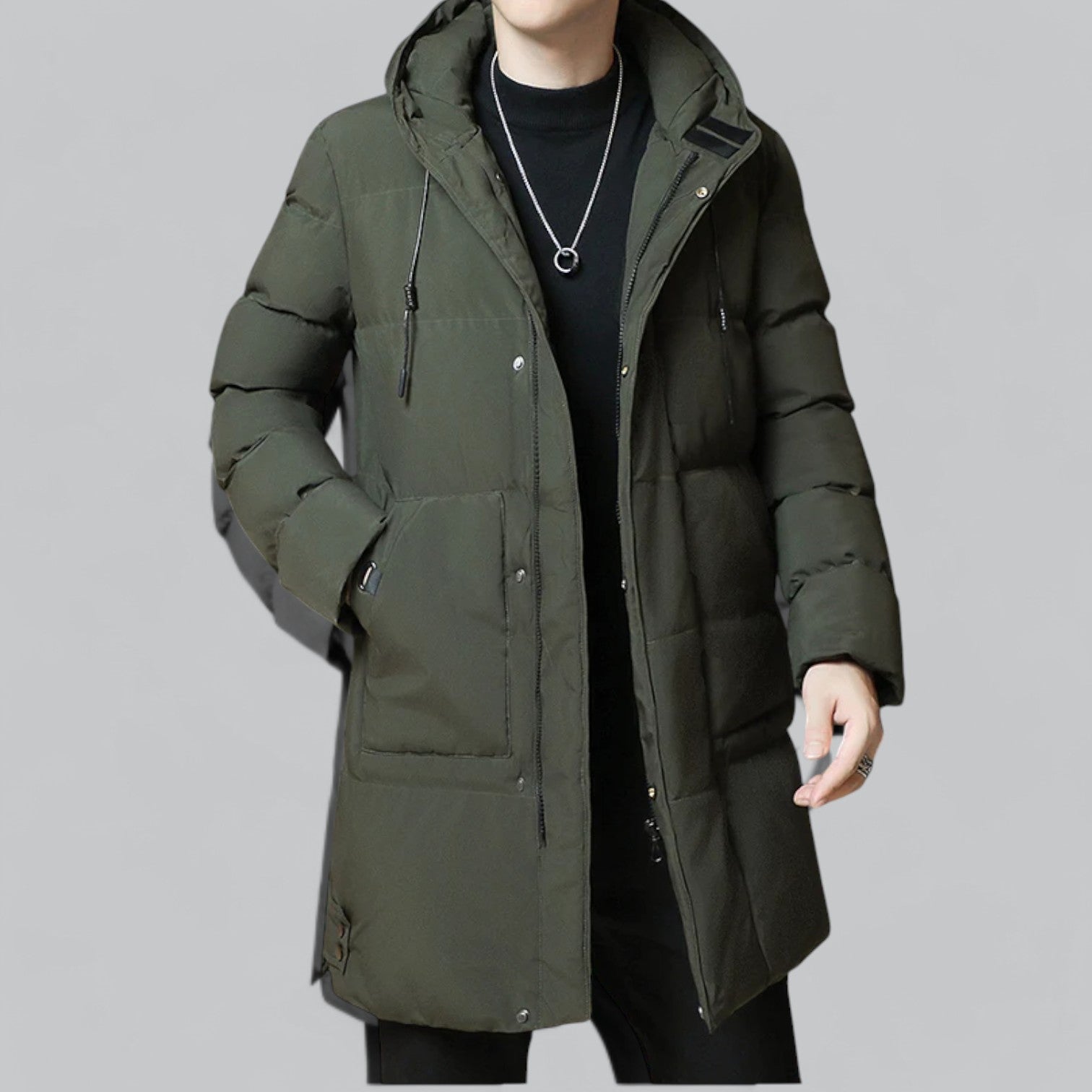 Upplev oöverträffad komfort med denna eleganta vinterkappa. Tillverkad av högkvalitativ bomull är den både vind- och vattenavvisande för maximalt skydd. Den långa designen ger extra värme – perfekt för kalla dagar. Oavsett om du är på jobbet eller ute på stan kombinerar den stil och funktion för varje tillfälle.