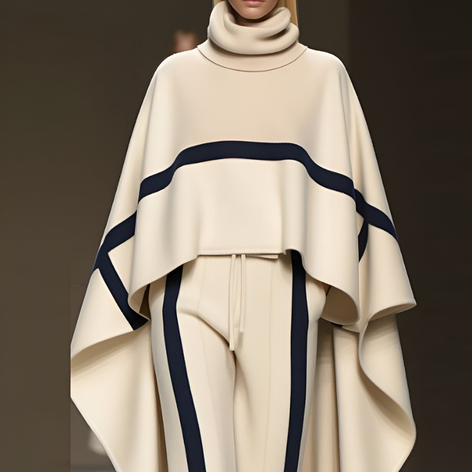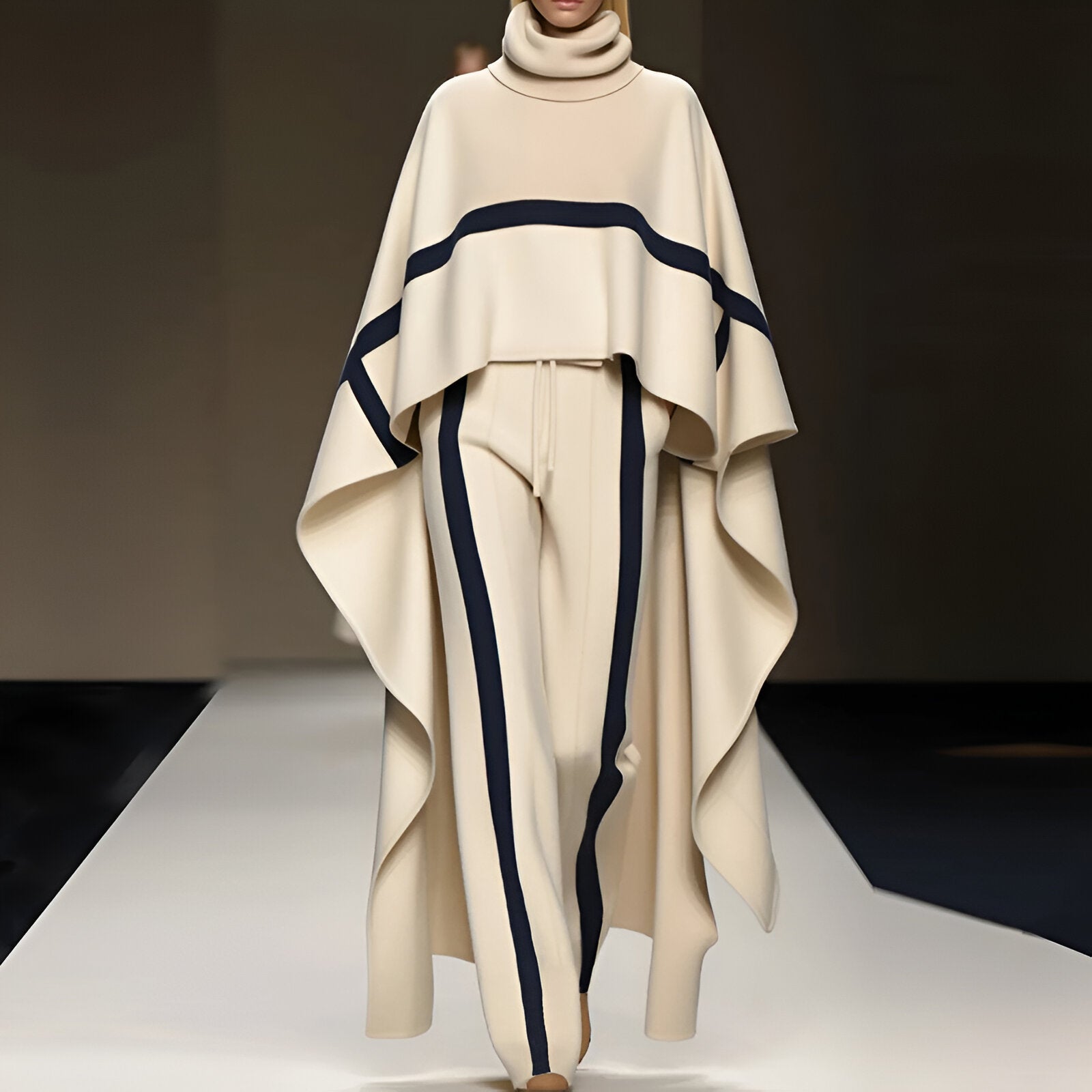 Snygg och bekväm passform Den lösa, avslappnade passformen på den turtleneckade kappan och de långa byxorna ger maximal komfort utan att göra avkall på stilen. Känn friheten att röra dig samtidigt som du alltid ser snygg och samlad ut. Detta set är perfekt för alla tillfällen och anpassar sig enkelt till din dag.