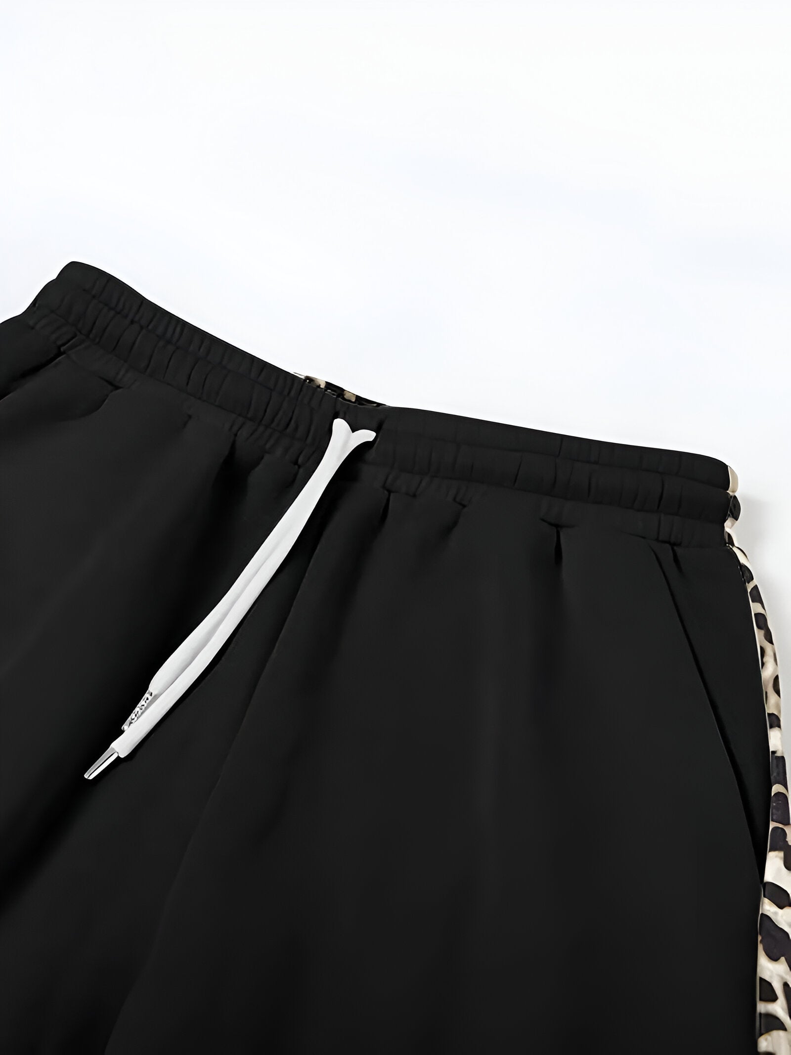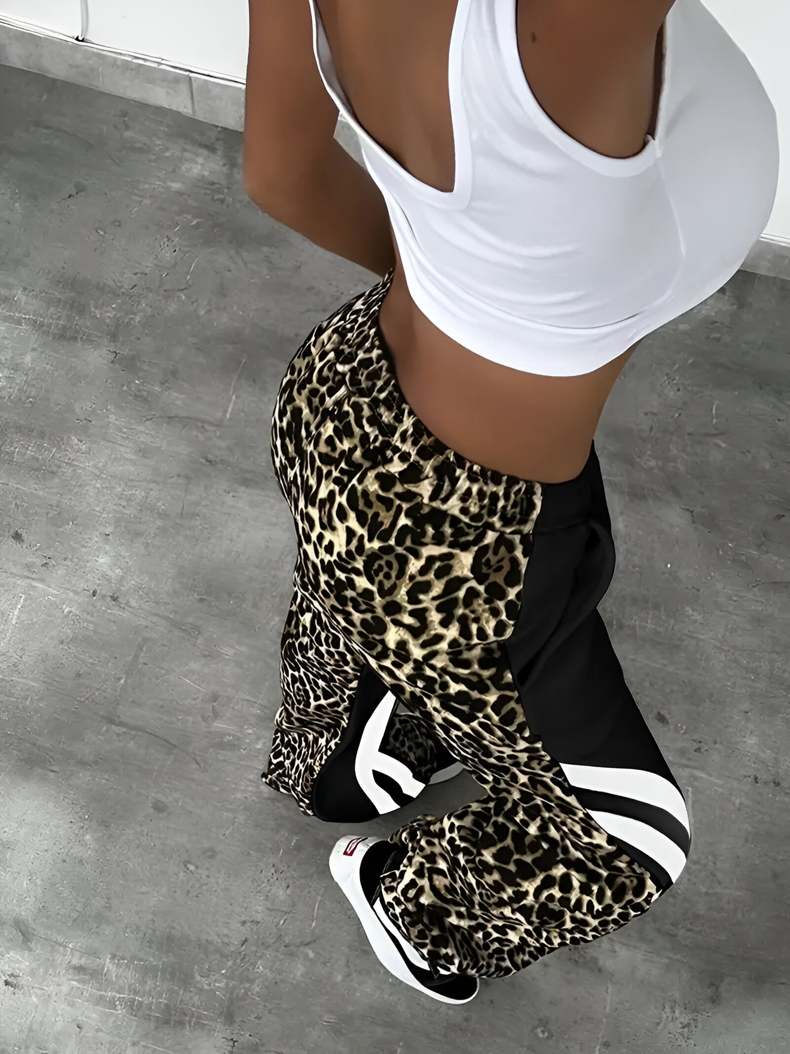 Håll värmen under kalla dagar samtidigt som du ger din look en djärv och modern touch Tänk dig att du kan glida in i dessa mysiga, fleecefodrade byxor som håller dig varm. Den höga midjan och vida bensnittet ger en smickrande och bekväm passform, medan leopardmönstret och färgblocksdetaljerna ger byxorna en trendig och iögonfallande look. Oavsett om du kopplar av hemma eller är ute och rör på dig är dessa byxor din perfekta följeslagare under hösten och vintern.