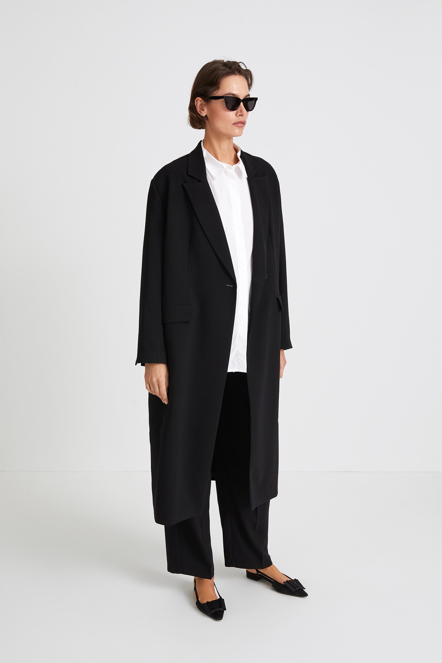 Saga | Elegant Dubbelknäppt Kappa i Lyxig Crepe