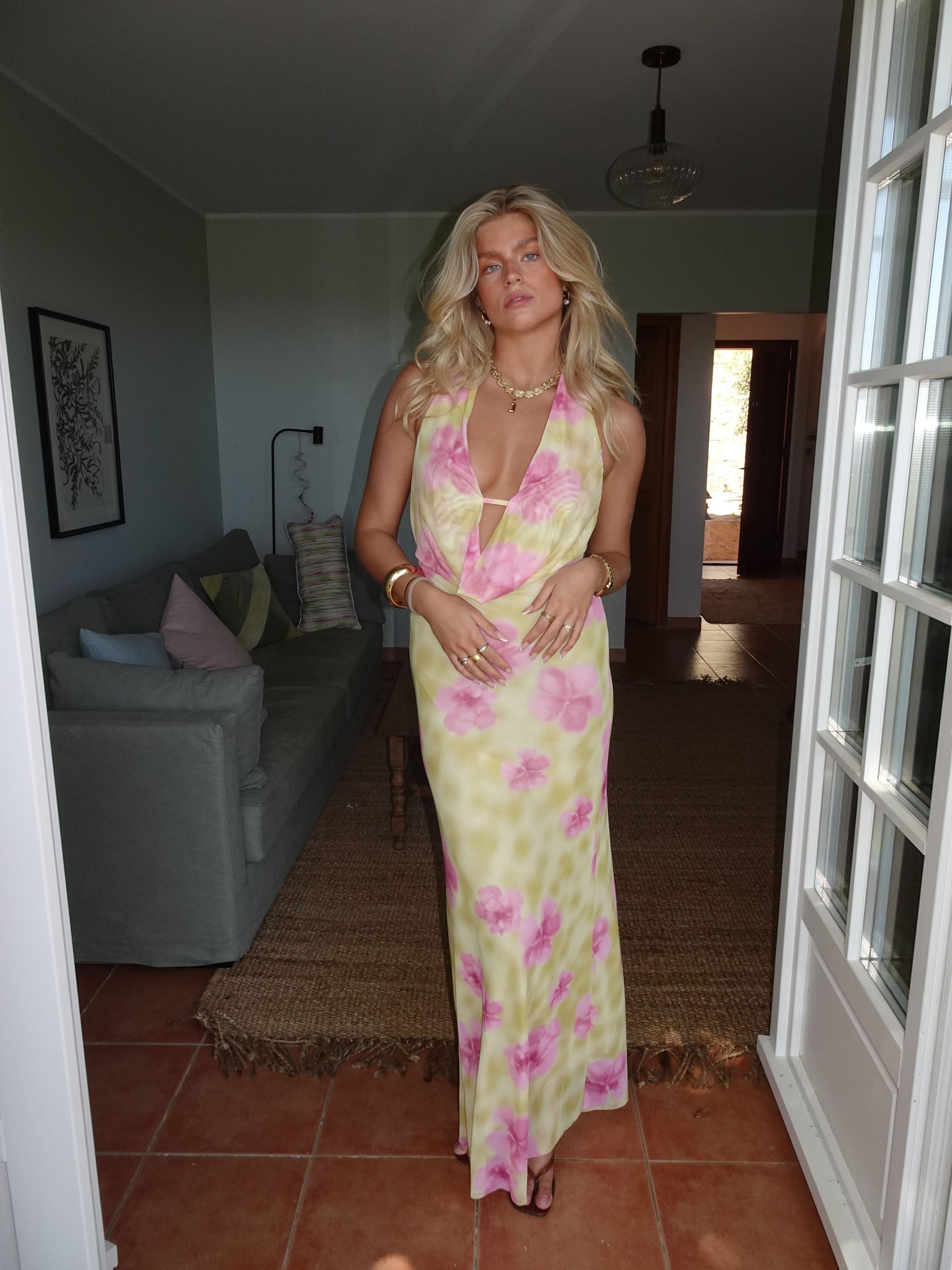 Sara maxiklänning är skapad för att ge dig den där lätta, svepande känslan som hör sommaren till. Med sin långa siluett och mjuka tyg ger den både elegans och komfort, perfekt för allt från strandpromenader till trädgårdsfester. Det är klänningen som låter dig glänsa – utan att du ens försöker.