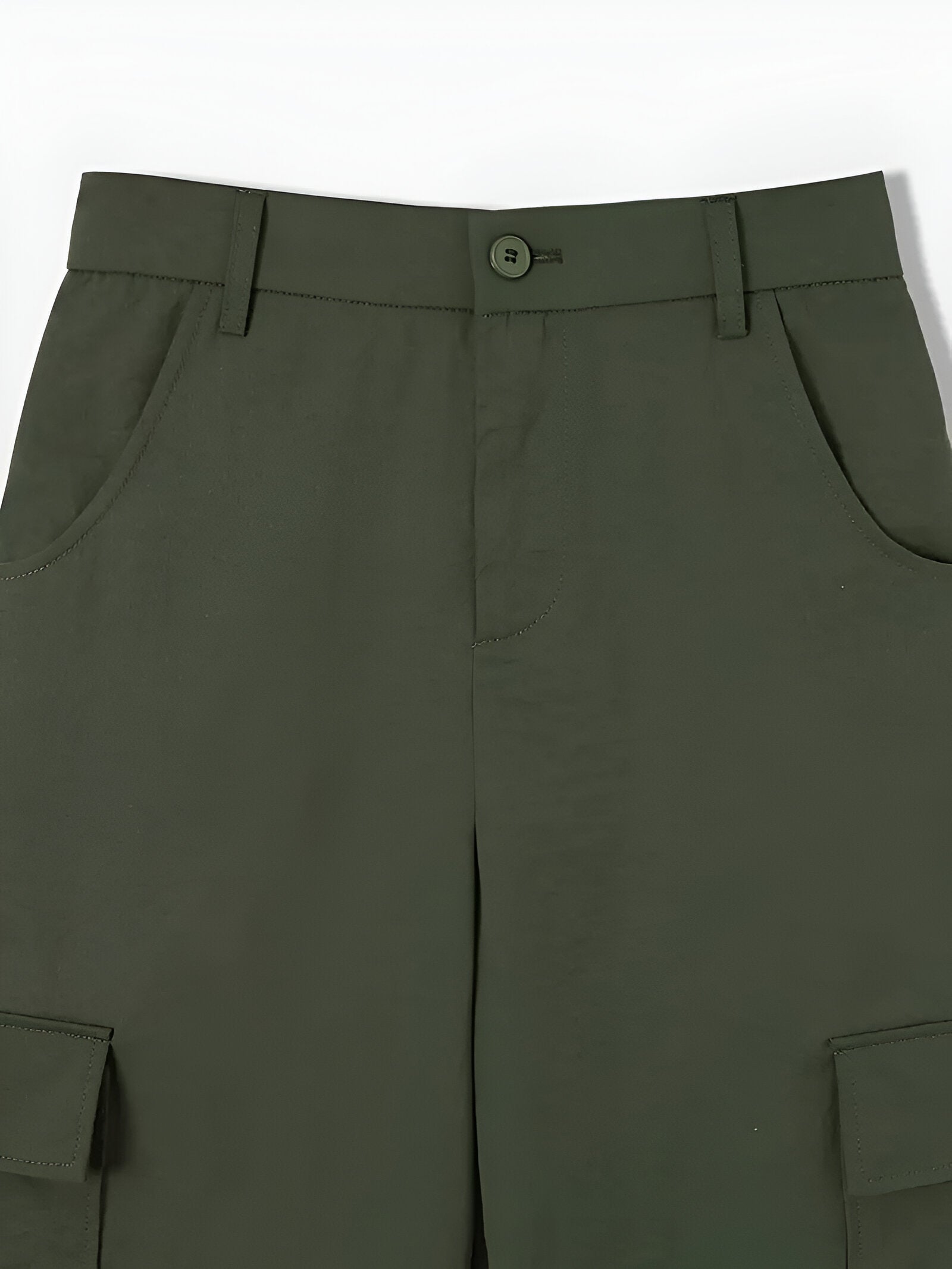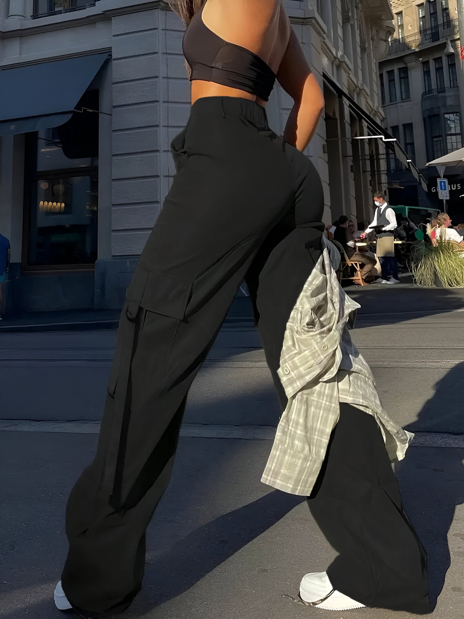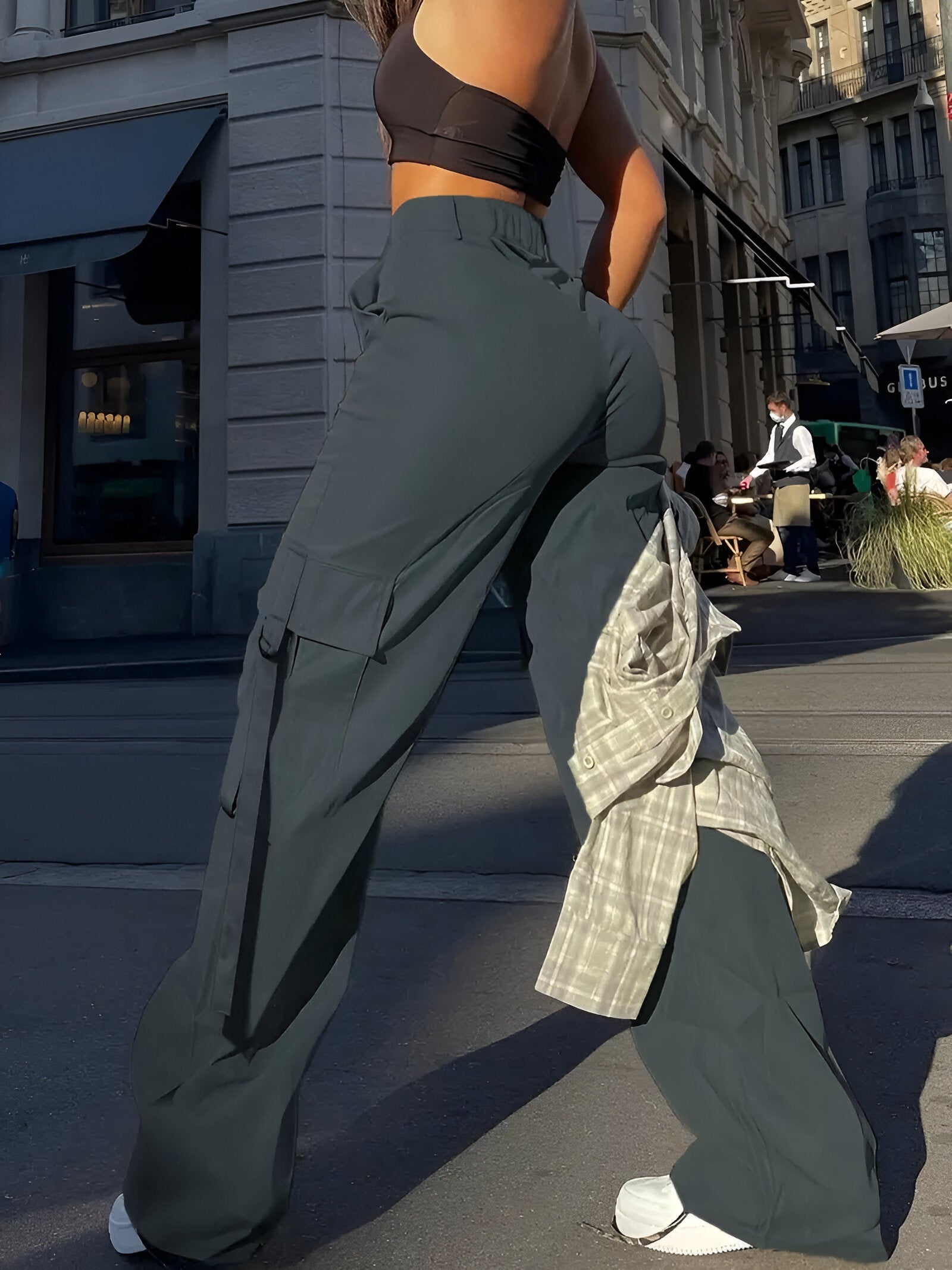 Praktisk stil med en modern twist De klassiska cargo-fickorna ger en touch av praktisk stil, medan den enkla, enfärgade färgen gör din look enkelt chic. Byxorna är lika snygga som de är praktiska och passar perfekt till alla toppar.