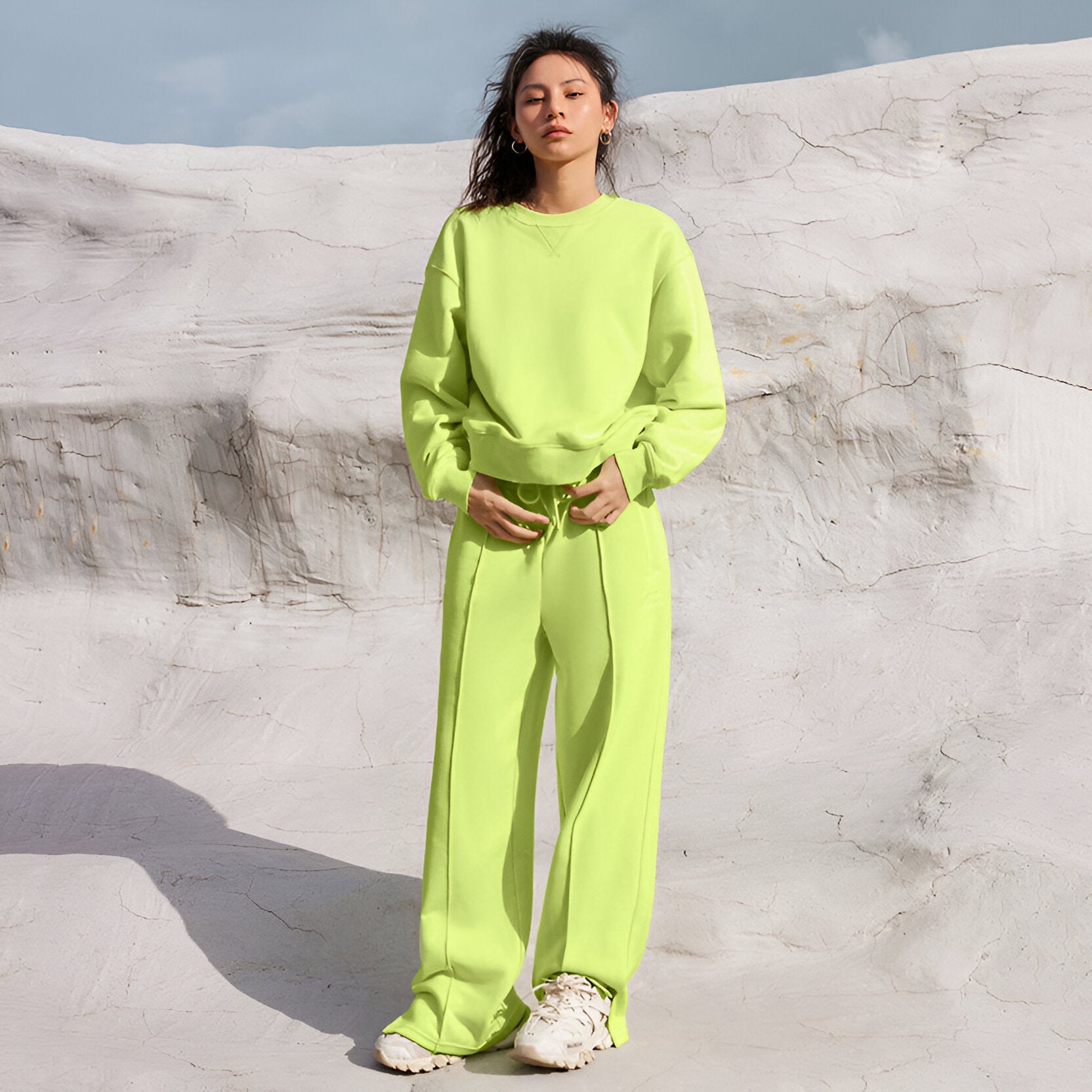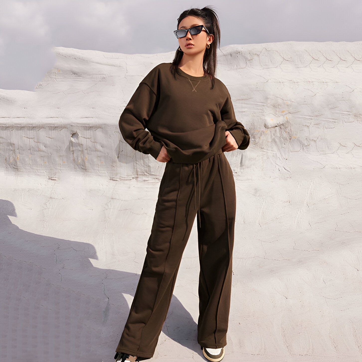 Det här tvådelade jumper-setet ger dig en avslappnad och modern look, perfekt för alla tillfällen - oavsett om det är brunch på helgen eller efter en lång dag. Njut av den avslappnade stilen utan att kompromissa med elegansen.