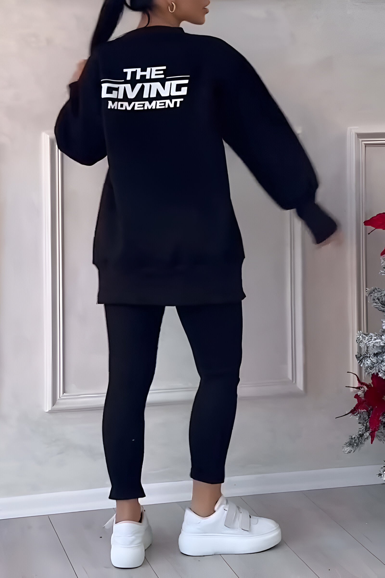 Enkel komfort och stil Den överdimensionerade huvtröjan och den lösa, oregelbundna toppen ger en avslappnad passform, perfekt för lediga dagar eller träningspass. De matchande leggingsen skapar en snygg, sportig look samtidigt som de ger komfort hela dagen.