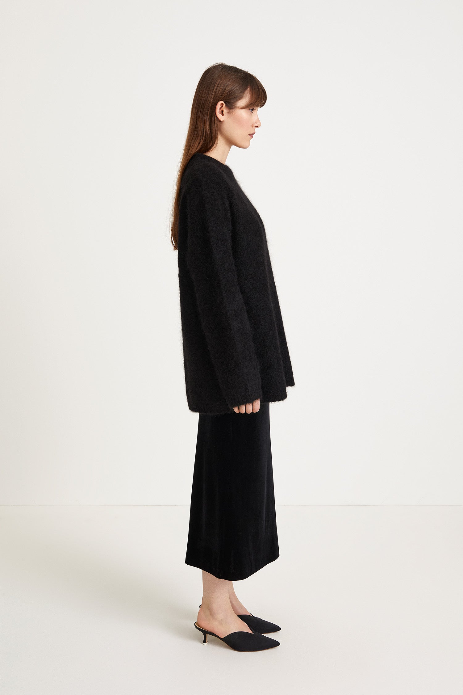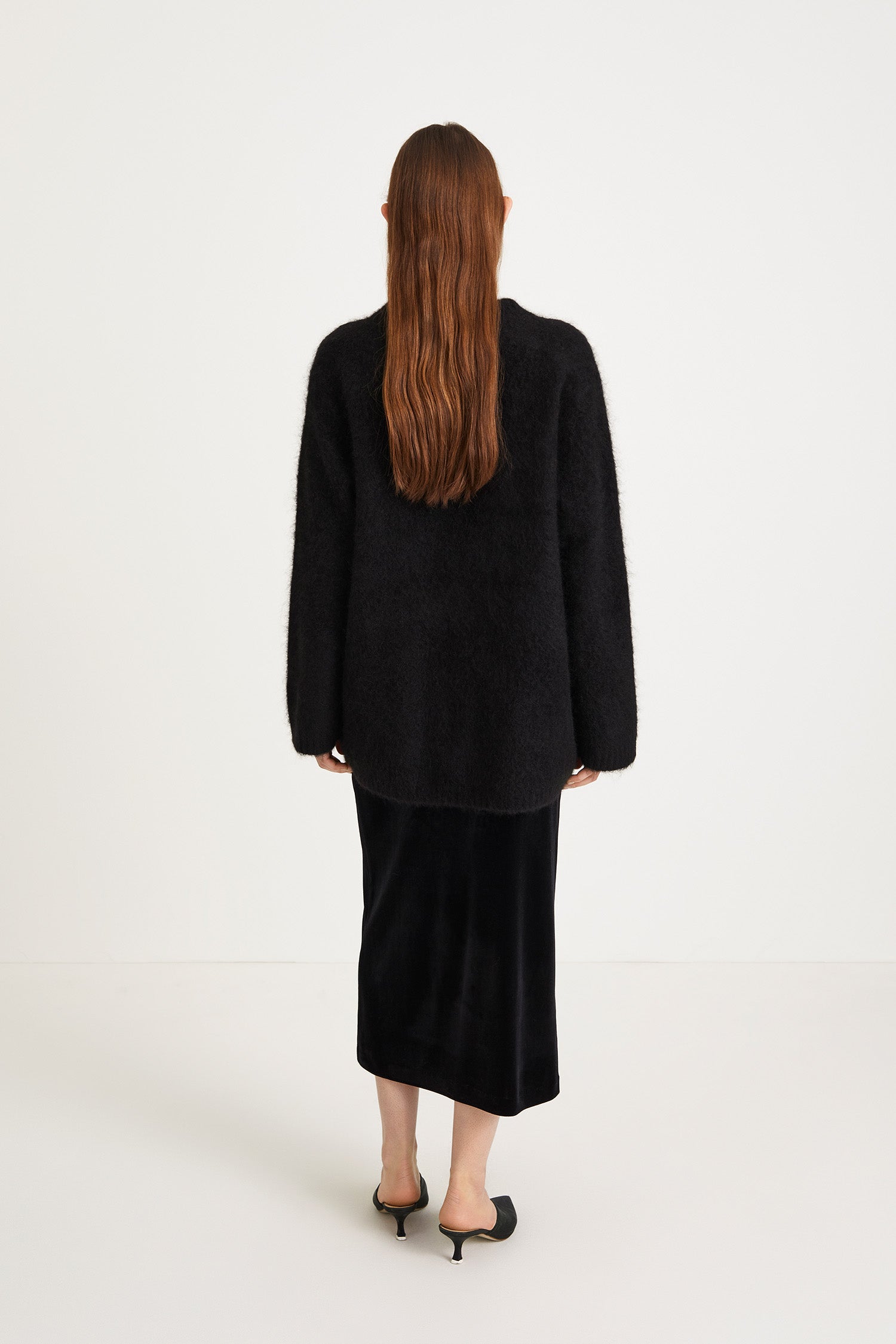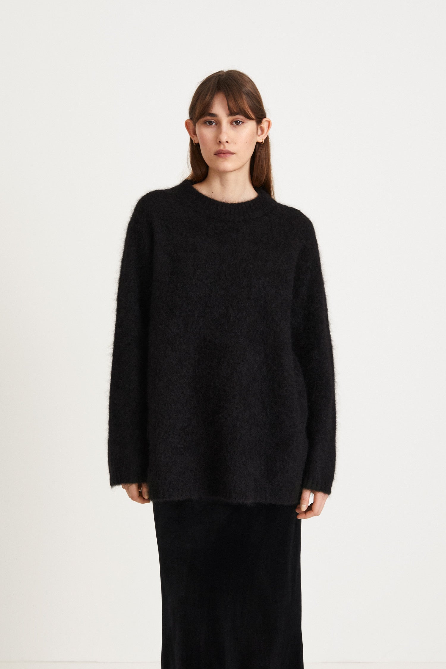 Uppgradera din garderob med Synnöve | Mysig Mohairblandad Tröja för Ultimat Värme, en lyxig basplagg designad för enkel elegans. Denna svarta mohairblandade tröja har en rak silhuett och en klassisk rund halsringning, vilket gör den perfekt för lager-på-lager-styling eller att bära ensam. Oavsett om du klär upp dig eller håller det avslappnat är Synnöve en tidlös favorit.