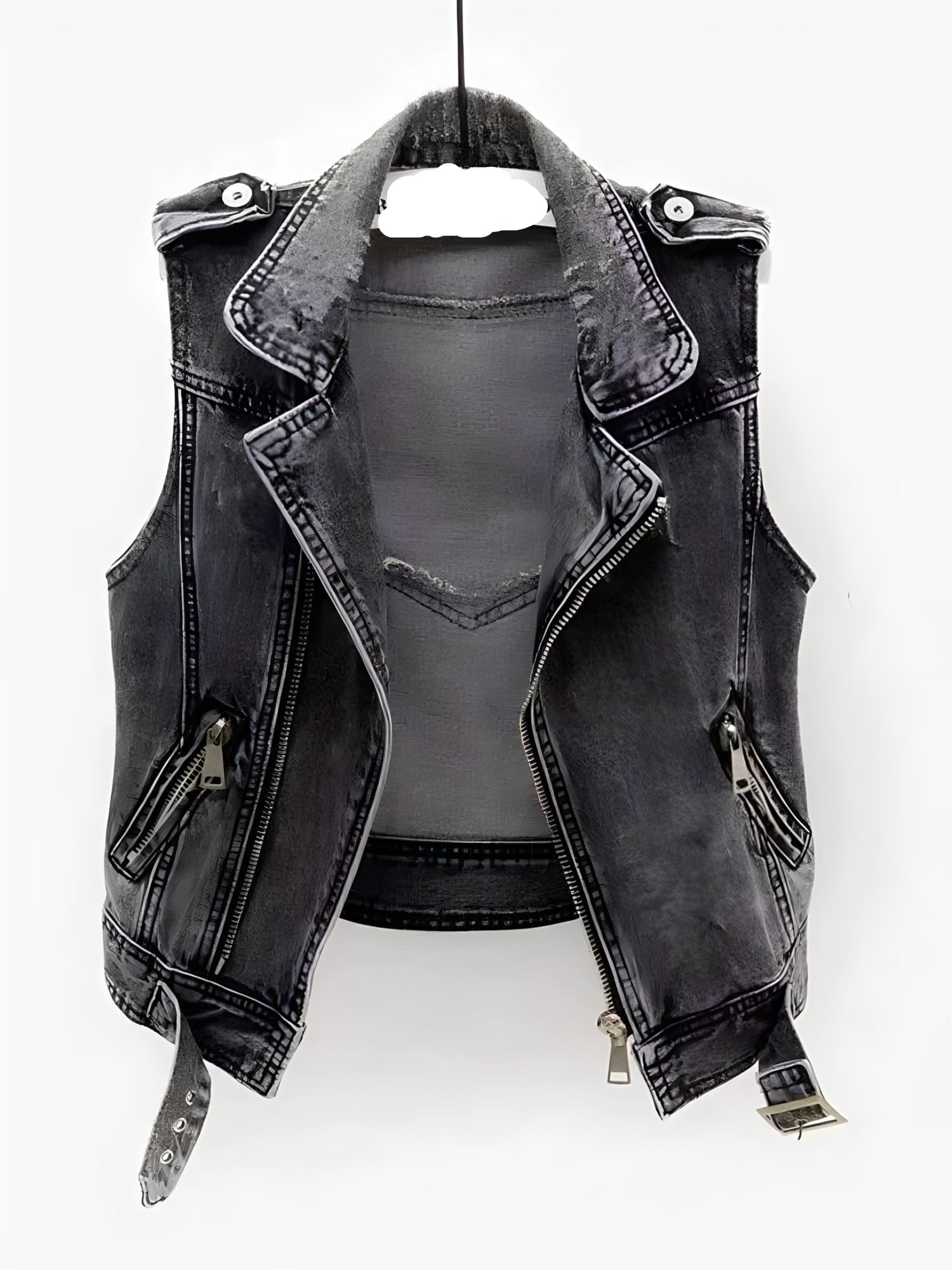 Uppgradera din garderob med ett stilrent inslag. Thea jeansväst är den perfekta kombinationen av trend och funktionalitet. Tillverkad av slitstark denim med snygga slitna effekter och praktiska fickor, är den både tålig och chic. Den mångsidiga designen gör den enkel att matcha med klänningar eller jeans för en komplett outfit.