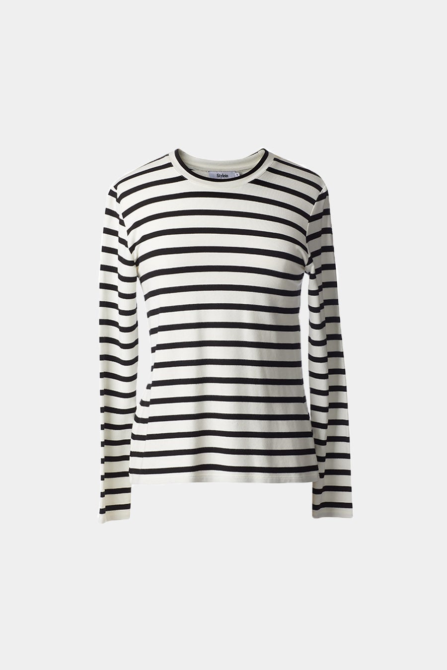 Höj din vardagsgarderob med Therese | Klassisk randig långärmad topp. Lyxigt mjuk viskosjersey garanterar en bekväm passform och en elegant look. Figurnära silhuett skapar en stilren och smickrande form. Mångsidig design gör den perfekt för både avslappnade och sofistikerade outfits.