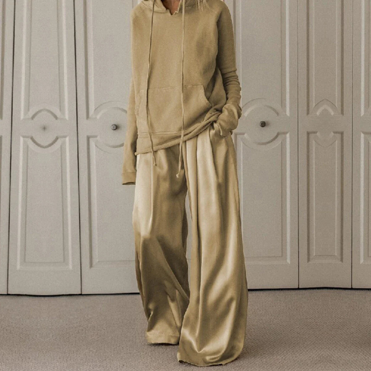 Oöverträffad mångsidighet Med den långärmade huvtröjan och byxorna med vida ben och dragsko med hög midja kan du enkelt skapa olika looks. Styla den med dina favoritaccessoarer för en kväll ute eller behåll den avslappnad för en helgbrunch.