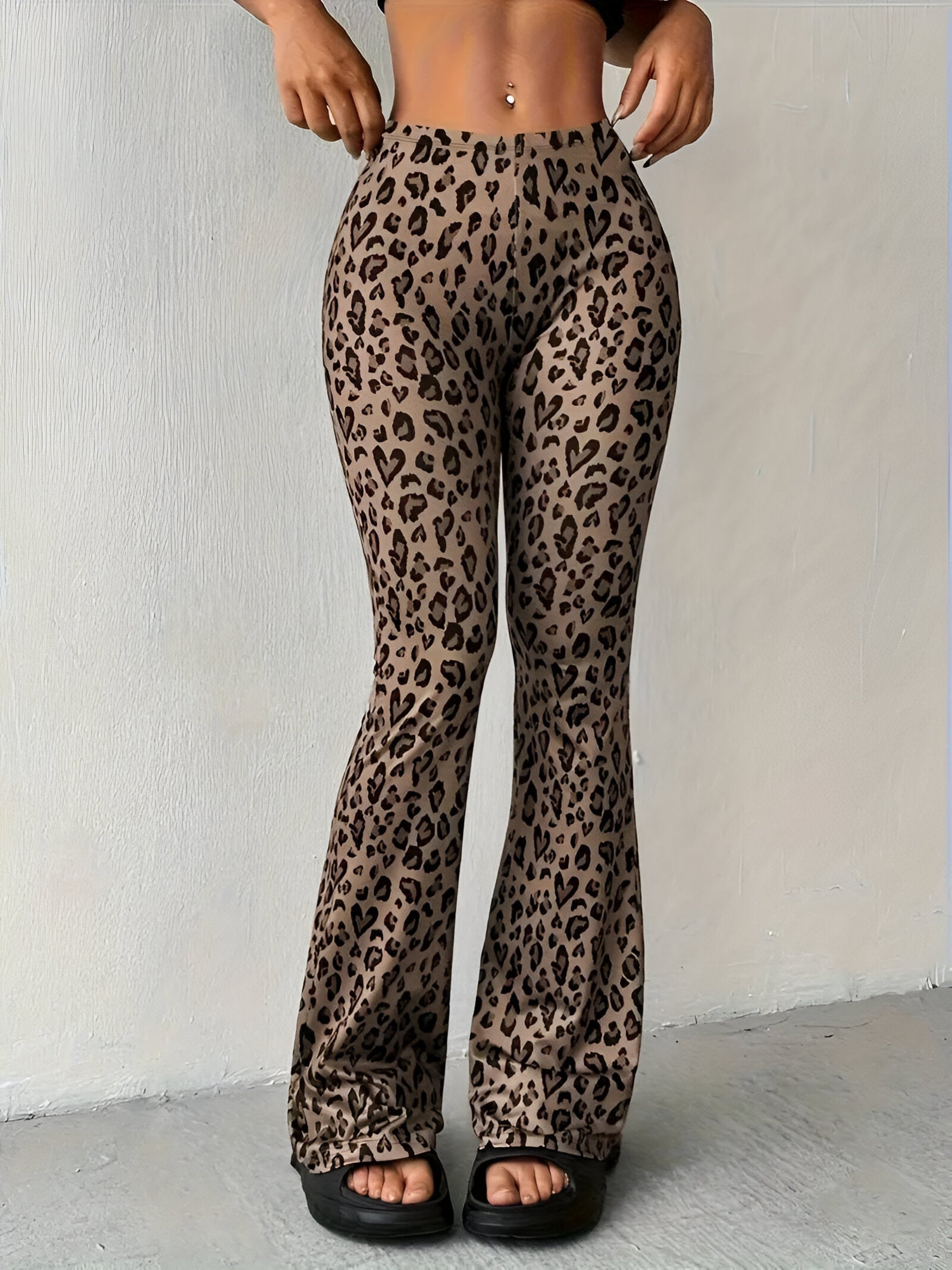 Djärv och modemedveten Det iögonfallande leopardmönstret ger en vild touch till din outfit, medan det utsvängda benet ger en retrokänsla. Gör ett statement utan att kompromissa med komforten.