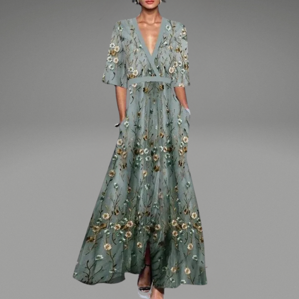 Viola | Elegant Lång Blommig Klänning