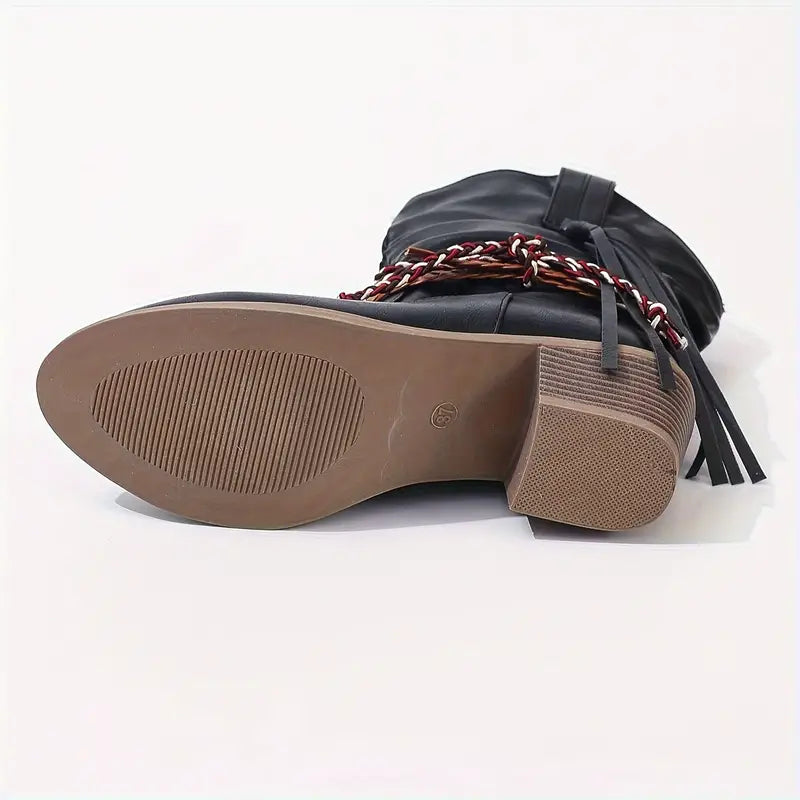 Fördel 2: Mångsidigt mode Kombinera dem som du vill - de här stövlarna passar till alla outfits. Bär dem med en flödande klänning för en boho-look eller med jeans för en avslappnad känsla. De snygga tofsarna och de flätade detaljerna gör ett statement och ser till att du sticker ut i mängden.