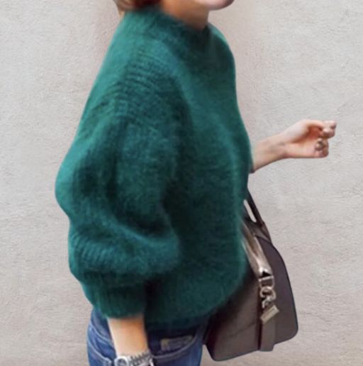 Yibna | Löst stickad enfärgad tröja – vintage angoratröja